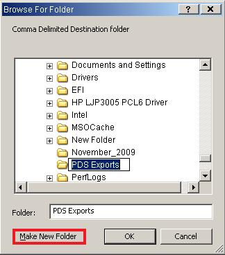Step 4 If you all ready have a PDS Exports folder or a place that you usually save your reports for PDS then use that folder. If not just click Make New Folder. Once you click this, a folder will appear saying New Folder. Change the name to PDS Exports and then click OK next to Make New Folder. The new folder is now created. You can now go to Date Criteria and print your reports. |
